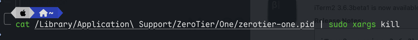 cat /Library/Application\ Support/ZeroTier/One/zerotier-one.pid | sudo xargs kill